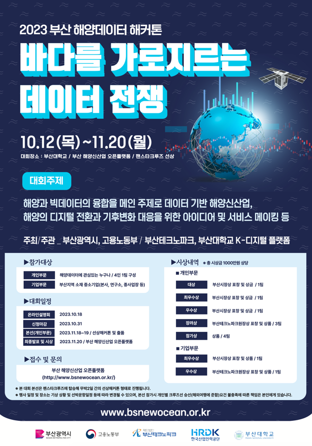 - 최종발표 및 시상 : 11월 20일(월) / 부산 해양신산업 오픈플랫폼